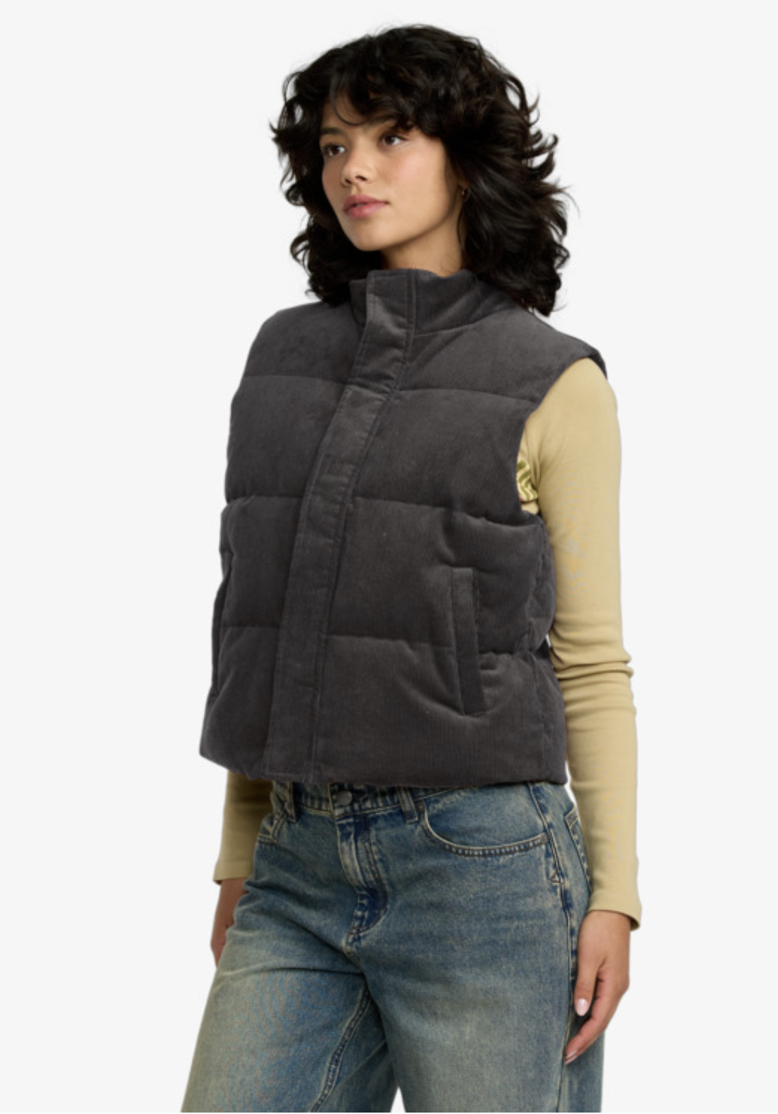 Fermeture à glissière sur le devant avec boutons-pression